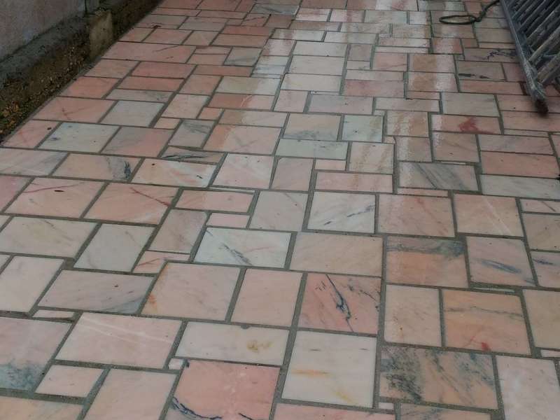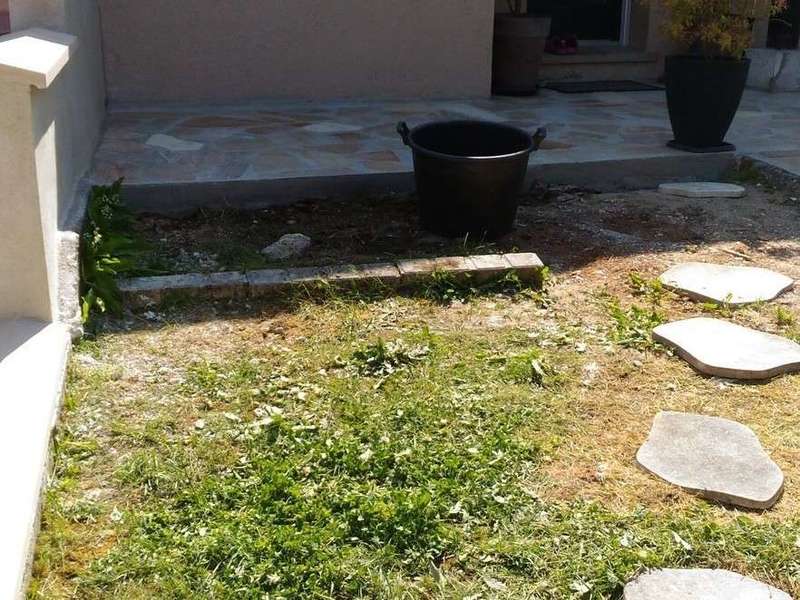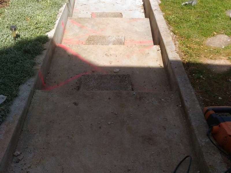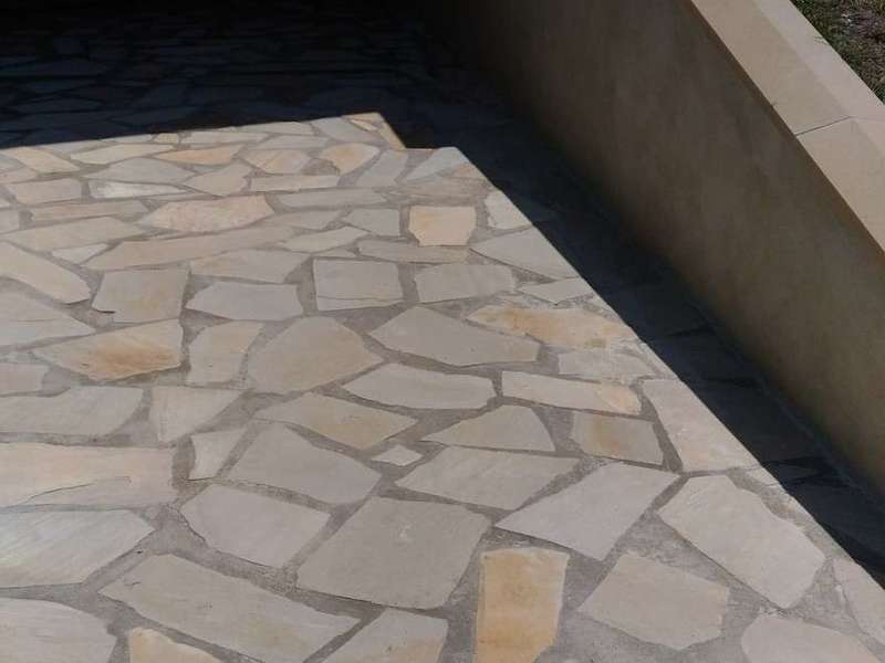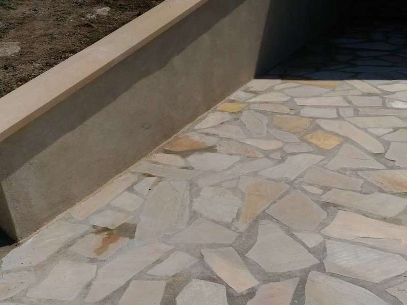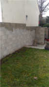 Photos Après Travaux : ( Création d’une belle terrasse avec de la pierre, création de 2 escaliers en pierre, Mur enduit avec l’installation d’une clôture en aluminium, pose de chapeaux sur les murets, création d’un escalier plus accessible au sous sol .)